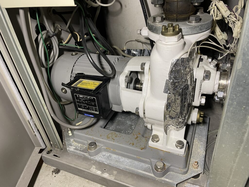 今回は、そのろ過装置の中でも、お湯をぐるぐる循環してくれている「ろ過ポンプ」からの漏水という事で修繕してきました。